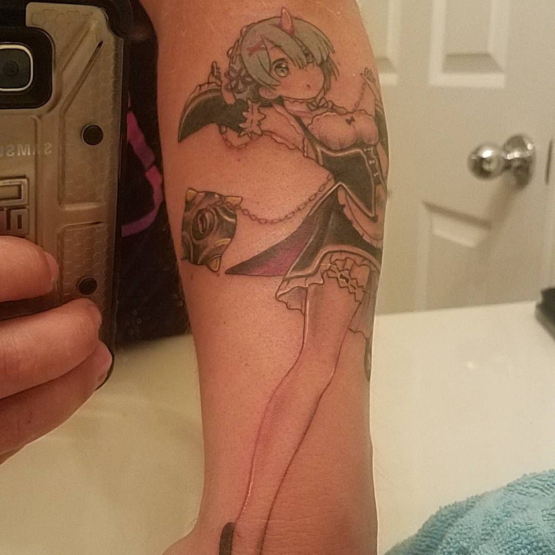 Bipolar Mode Rem Ram Rezero Model Minty Kitsune Done At Tattoodo Fkirons Eternalink Delight Needle Cartri Anime Tattoos Tattoo Work Ram Tattoo