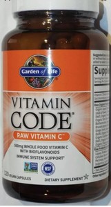Free shipping for many products!. Garden of Life Vitamin Code Raw Vitamin C 1 Vegan Capsules Comprehensive Vitamin C Sourced from Whole Food Ingredients Also known as ascorbic acid, Vitamin C plays an important role in the growth, development, as well as repair of body tissues It is used up by the body when it comes to performing different physiological functions. Vitamin Code Raw Vitamin C Vitamin Code Raw Vitamin C supplies 500mg of whole food Vitamin C with bioflavonoids, blended in a base of 23 fruits and vegetables with live Probiotics and Enzymes Raw Vitamin C also uses no high heat, synthetic binders or fillers, artificial flavors, sweeteners, colors or additives commonly used in tablets.