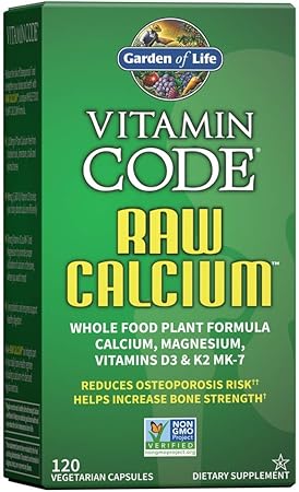 Vitamin Code RAW BComplex is whole food nutrition, specifically formulated to include high potencies of eight whole food complexed B Vitamins 23 Organically grown fruits and vegetables add supporting antioxidant, vitamins and nutrient cofactors Mental and Physical Energy Heart and Blood Health Healthy Response to Stress Live Probiotics and Enzymes Support Healthy Digestion What RAW Means No. Produced below 46º C for freshness, each capsule contains live bacteria and enzymes And they’re free from synthetics, fillers, artificial flavours, colours or additives Garden of Life Vitamin Code Raw Calcium contains whole food plant calcium, magnesium, 1,600IU of vitamin D3 and 100mcg of K2 (MK7). Garden Of Life Vitamin Code Raw Calcium1 Vegetarian Capsules SKU Size 1 VCAPS 60 VCAPS Unit Count 1 Item Form Vegetarian Capsules Directions Adults take 4 capsules daily For best results take 2 capsules with breakfast and 2 capsules with lunch Capsules may be opened and contents added to water or raw juice.