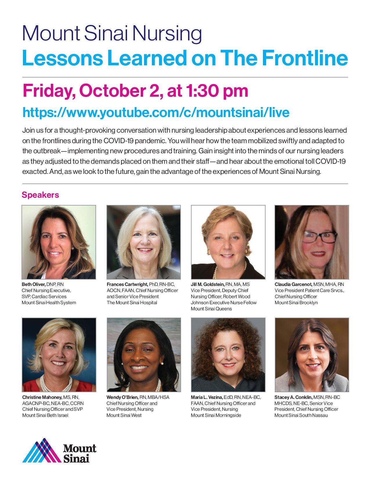 Mount Sinai Health System Join Us For A Thought Provoking Conversation With Nursing Leadership About Experiences And Lessons Learned On The Frontlines During The Covid19 Pandemic On Friday October 2 At