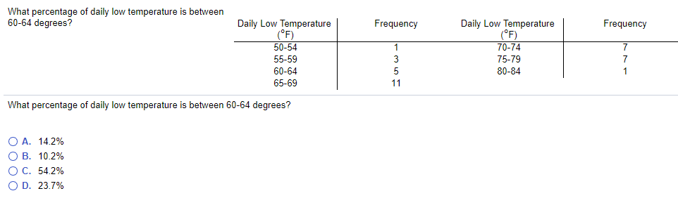 Solved What Percentage Of Daily Low Temperature Is Betwee Chegg Com