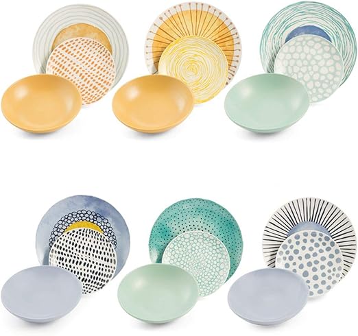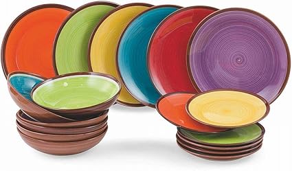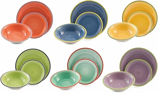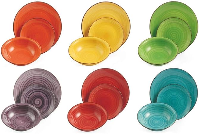 Villa D Este Calamoresca Juego De 18 Platos De Gres Y Porcelana De Varios Colores Amazon Es Hogar