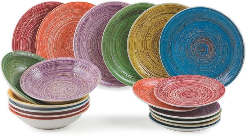 Villa D Este Home Vajilla 18 Piezas Cala Jondal Multicolor Amazon Es Hogar Vajilla Platos De Postre Villa
