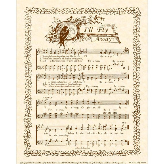 I Ll Fly Away Vintage Hymn Wall Art Print Biblical Sheet Etsy