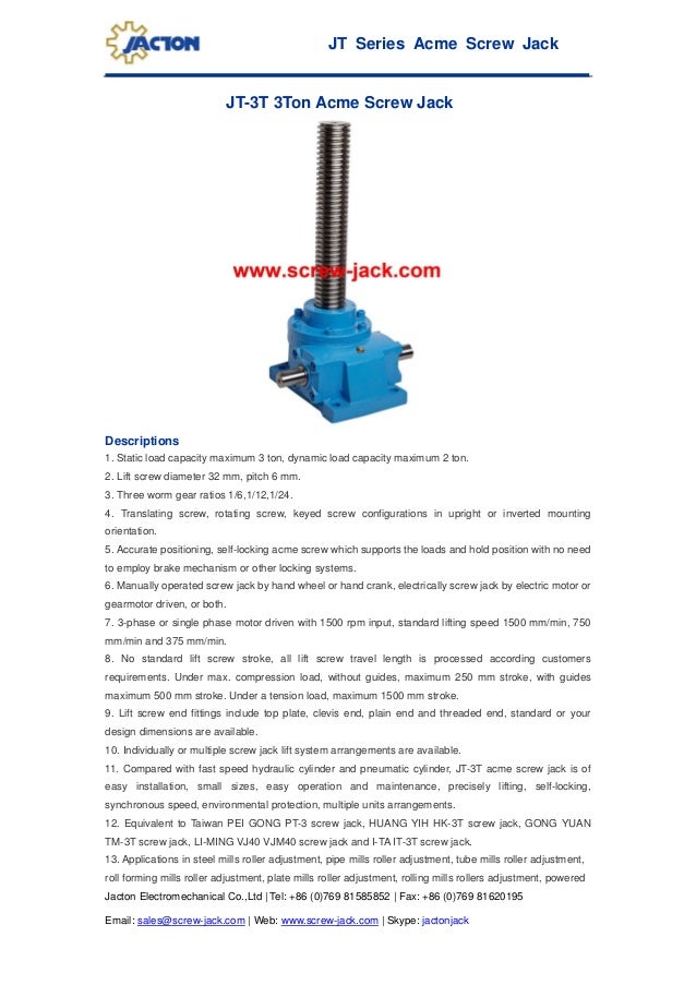 Jt 3 T Acme Screw Jack 90 Degree Screw Type Gearbox 2 Inches Machin