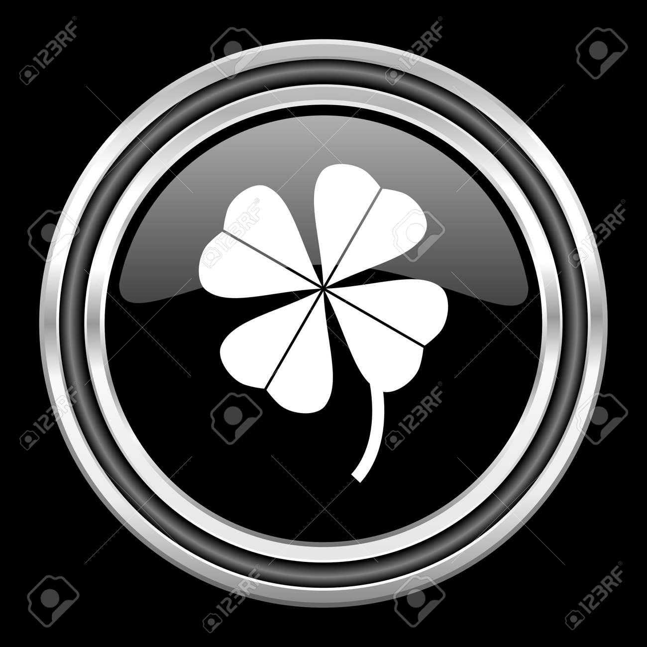 Four Leaf Clover Silver Chrome Metallic Round Web Icon On Black Stock Photo Picture And Royalty Free Image Image