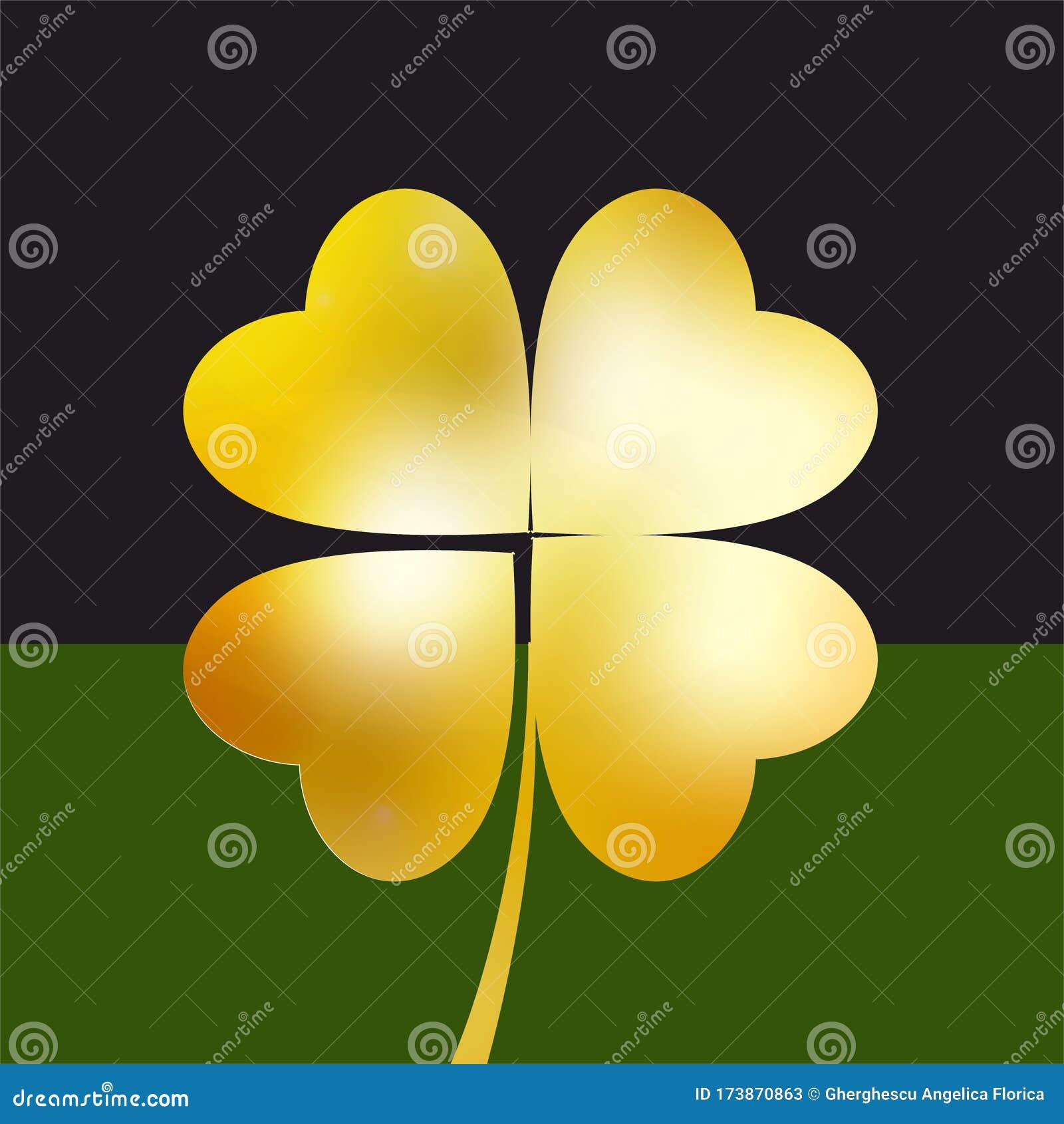 Patrick Day Illustration With Golden Four Leaf Clover Vector Illustration Stock Illustration Illustration Of Cross Four