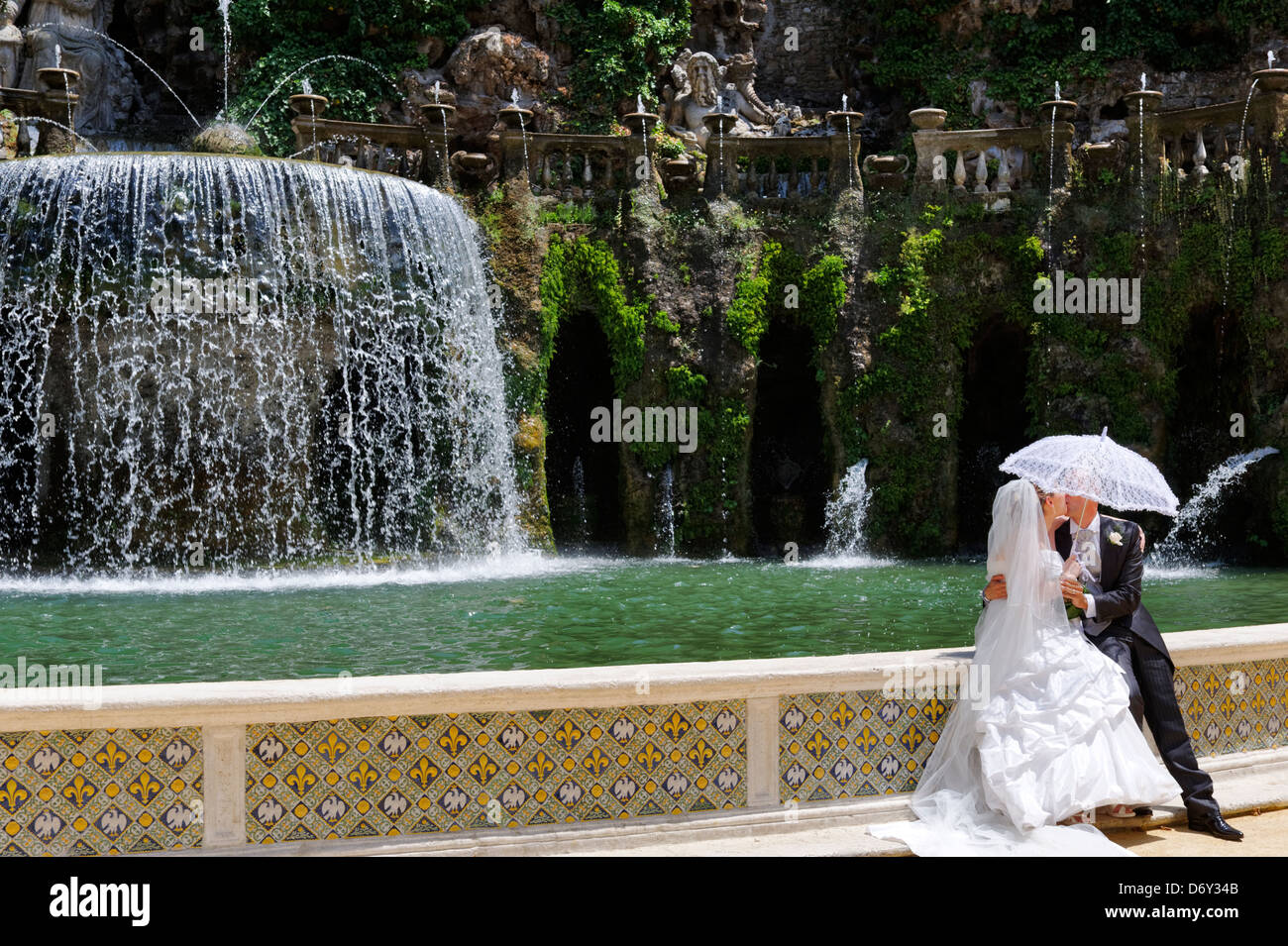 Villa D Este Tivoli Italy View Of A Bride And Groom At The Stock Photo Alamy