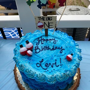 One Fishing Cake Topper Fishing Cake Topper Fishing Bobber Cake Topper The Big One Any Age Topper Fishing Birthday 1st Birthday By Kt Blue Creations Catch My Party