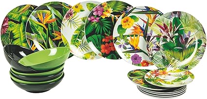 Villa D Este Home Tivoli Jungle Vajilla 18 Piezas Porcelana Gres Amazon Es Hogar