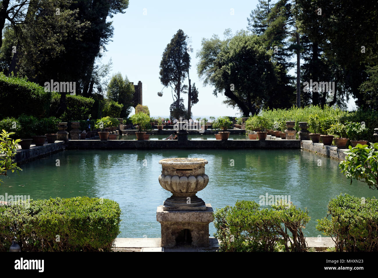 Vistas A Los Exuberantes Jardines Y Estanques De Nivel Villa D Este Tivoli Italia Villa D Este Famoso Por Su Espectacular Uso De Agua Representa El Qu Fotografia De Stock Alamy