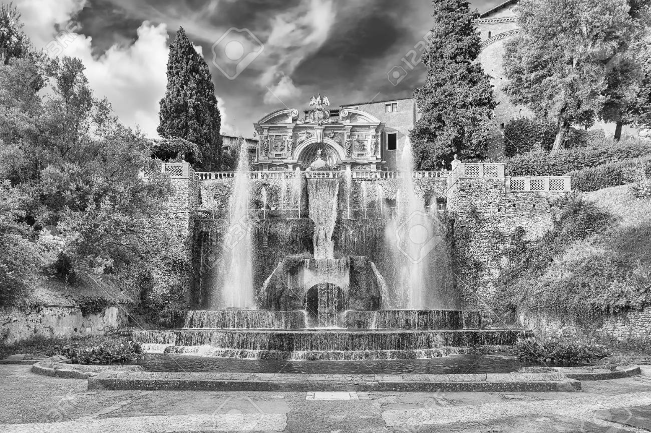 Los Famosos Jardines De La Villa D Este Cerca De Roma Italia La Fuente Creada Por Bernini En Los Famosos Jardines De Villa Canstock