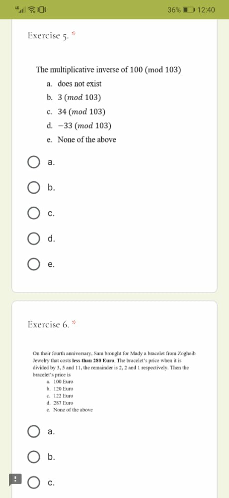 Solved 36 12 40 Exercise 5 The Multiplicative Inverse O Chegg Com