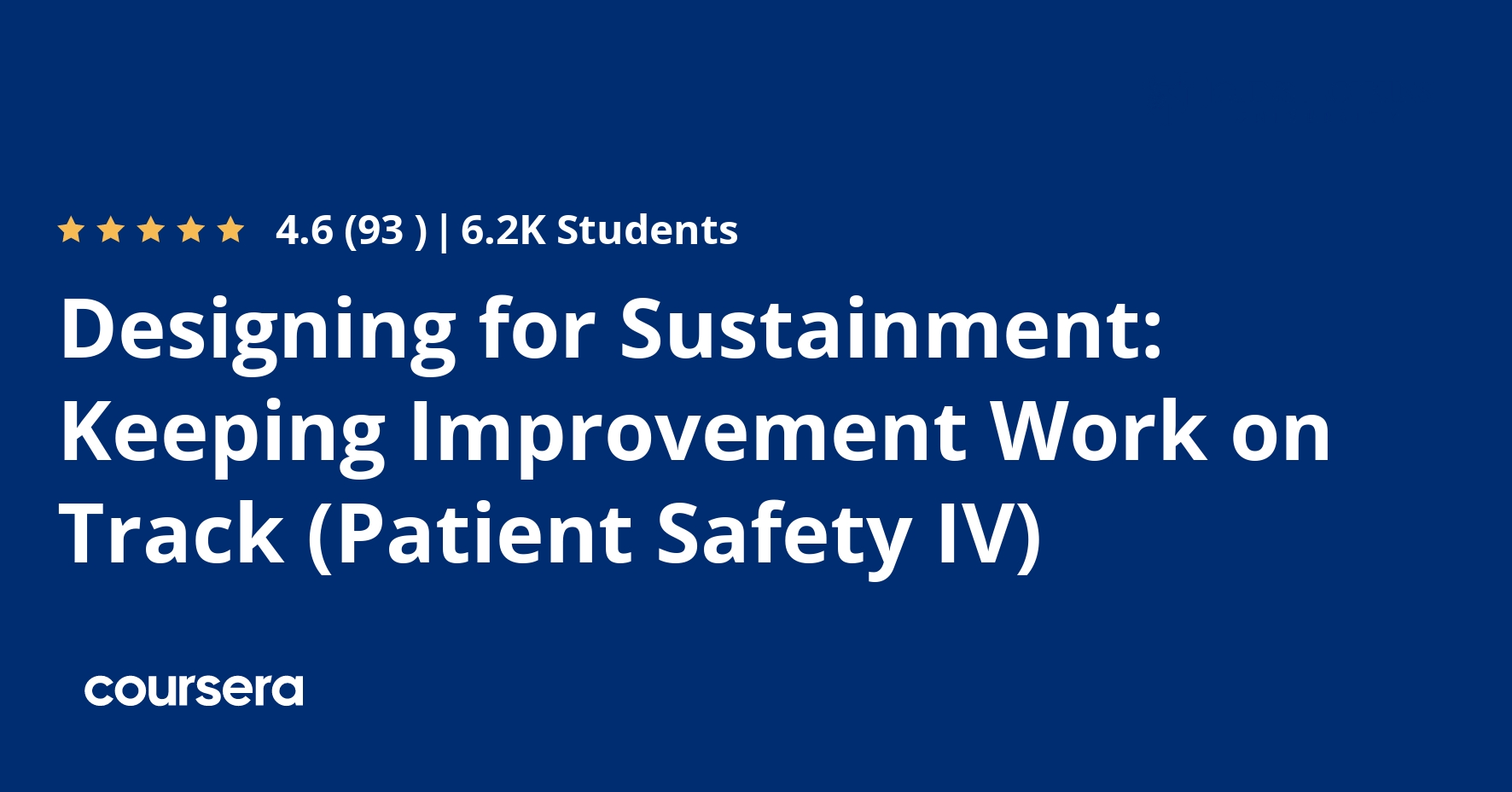 Designing For Sustainment Keeping Improvement Work On Track Patient Safety Iv Coursera