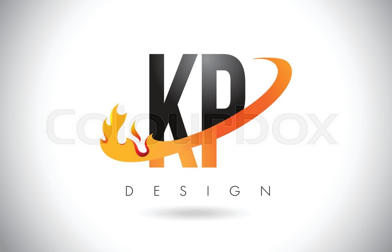 Kp K P Letter Logo Design With Fire Stock Vector Colourbox