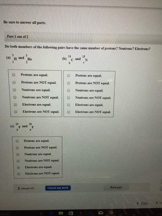 Solved How Many Protons Neutrons And Electrons Are There Chegg Com