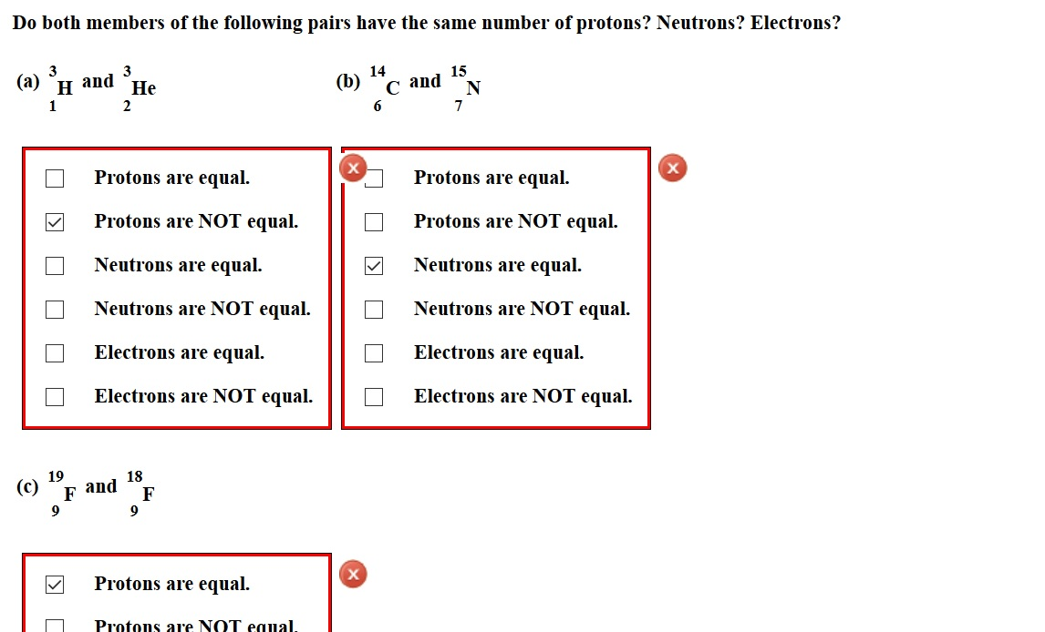 15 7 n protons neutrons electrons. Subsequently, one may also ask, how many protons neutrons and electrons does rubidium 87 contain?. Elements 1, with Protons, Electrons, Neutrons, and Atomic Mass 21 terms Isotopes. Because the atomic number of nitrogen is 7, it has 7 protons Then we take the mass number (protons neutrons) and subtract the number of protons to find the number of neutrons 15 7 = 8.