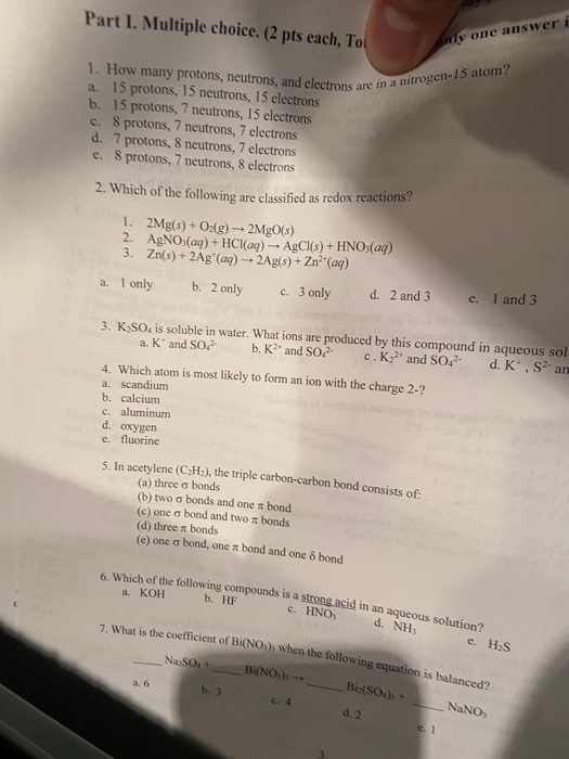 Solved Part I Multiple Choice 2 Pts Each Toi Ly One A Chegg Com