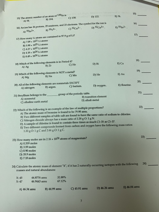 Solved 130 15 The Atomic Number Of An Atom Of 130xe Is Chegg Com