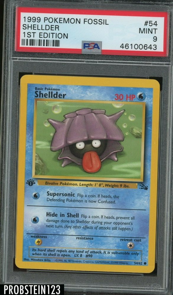 $049 and other cards from Fossil Unlimited Singles Checkout our buylist on Trollandtoadcom we buy & sell Pokemon Singles cards from AZ daily We sell sealed products, booster boxes, booster packs, singles, sleeves and collectors items for Pokemon Singles. Details about vintage pokemon card SHELLDER 30HP 54/62 1ST FIRST EDITION FOSSIL (mint) See original listing vintage pokemon card SHELLDER 30HP 54/62 1ST FIRST EDITION FOSSIL (mint) Condition Used Ended 01 Nov, 5501 AEDST Winning bid AU $4100 16 bids Postage. Find many great new & used options and get the best deals for Shellder 54/62 1st edition Fossil Set Pokemon Card High Grade at the best online prices at eBay!.