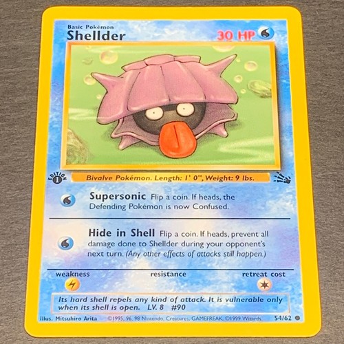 $049 and other cards from Fossil Unlimited Singles Checkout our buylist on Trollandtoadcom we buy & sell Pokemon Singles cards from AZ daily We sell sealed products, booster boxes, booster packs, singles, sleeves and collectors items for Pokemon Singles. Shellder 54/62 1st Edition Fossil Pokemon TCG Card ~ LP 1999 Vintage common Condition is "Used". Free shipping for many products!.