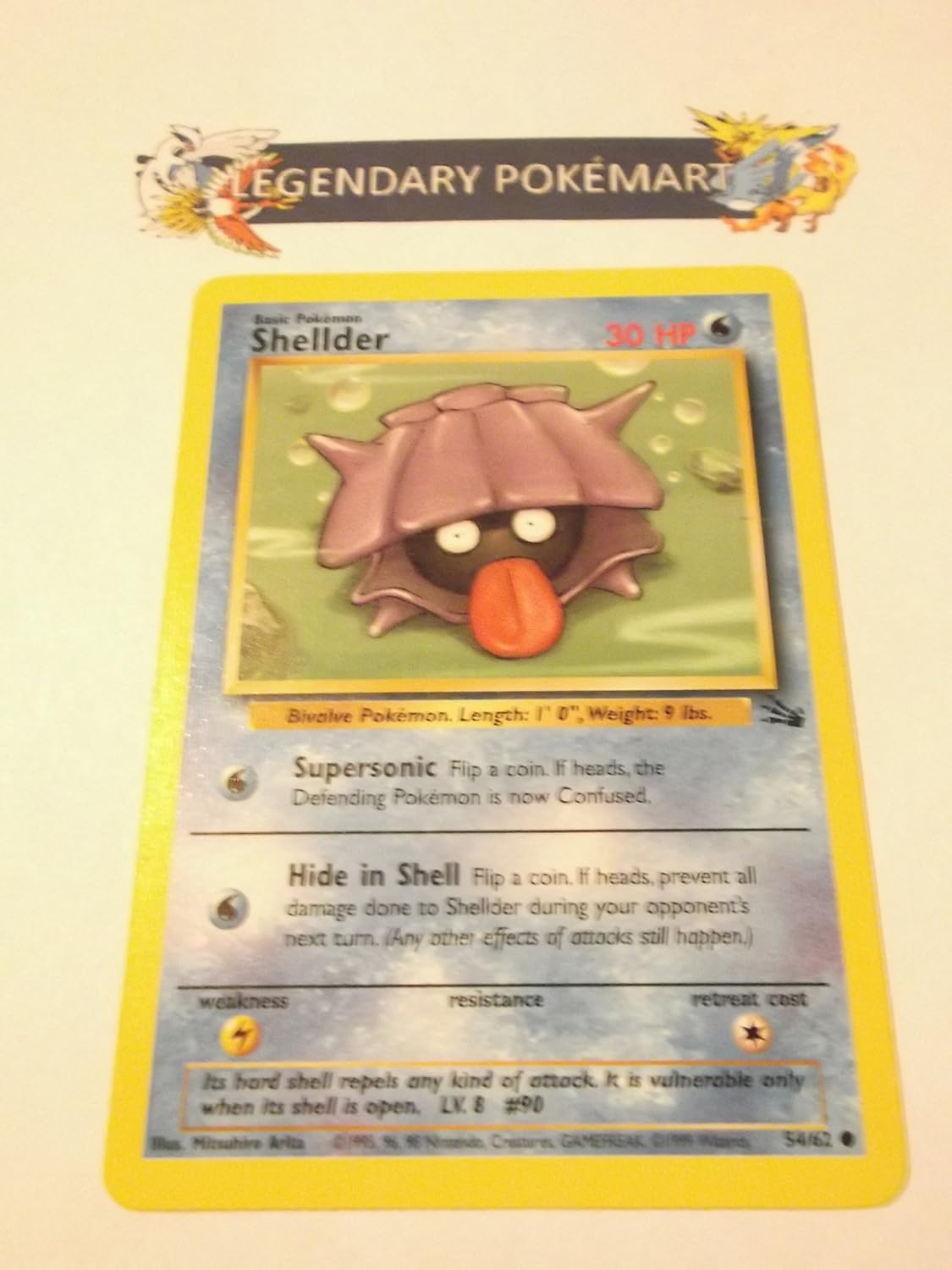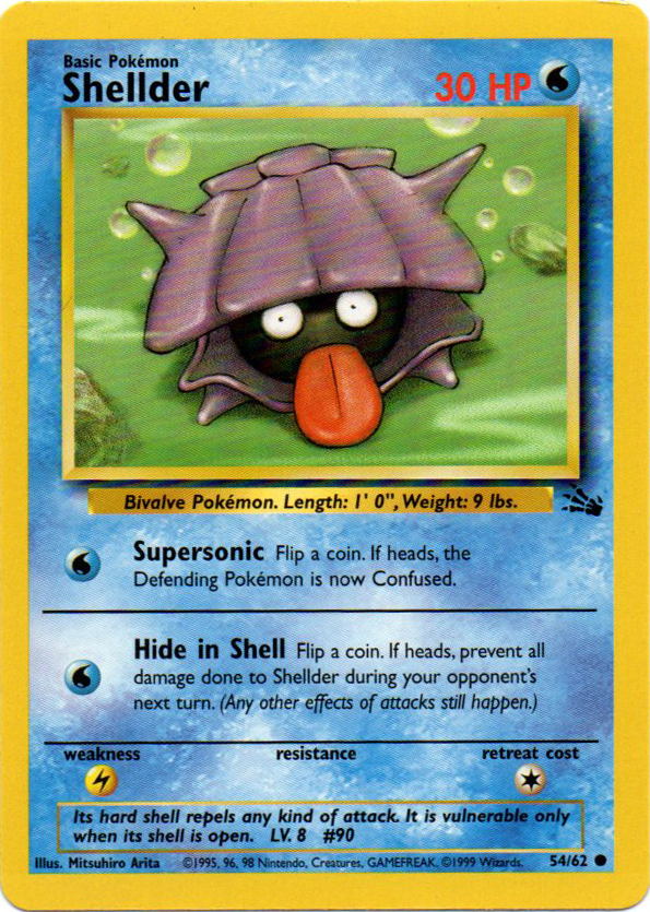 Fossil Pokemon Collectable Card Games page 3 Rare Board Games, mtg, Magic the Gathering, YuGiOh, rpg, Role Playing Games, Dungeons and Dragons, and many more games and supplies for sale Fast shipping and friendly customer service. Auction is for an original, lightly played Shellder (54/62) from the 1999 Wizards of the Coast Pokémon Fossil trading card game. 54/62 Japanese expansion Mystery of the Fossils Japanese rarity Card GB set Mystery Card GB ID B15 Card GB 2 set Legendary Power Card GB 2 ID B22 For more information on this Pokémon's species, see Shellder Shellder.