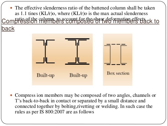 Solid Columns Design of solid columns is addressed in Section 37 of the NDS The main difference between solid column and builtup column capacity is in the calculation of C p, the column stability factor The column stability factor adjusts for the buckling effect on the column capacity. The axial compressive performance of novel Lshaped and Tshaped concretefilled square steel tube (L/TCFSST) column was assessed in this study Ten L/TCFSST columns were tested to failure under axial load The experimental data were used to determine various failure modes, bearing capacities, and loaddisplacement curves The test parameters included the section form, steel tube thickness. Now you know about the seven most used profiling shapes for beams.