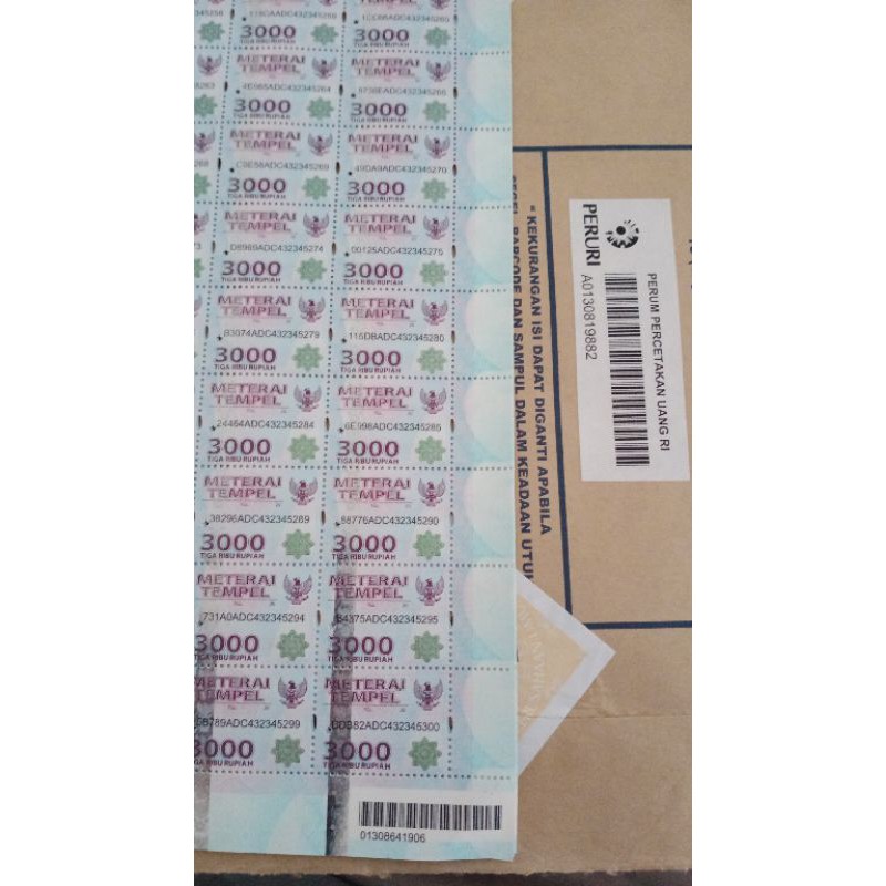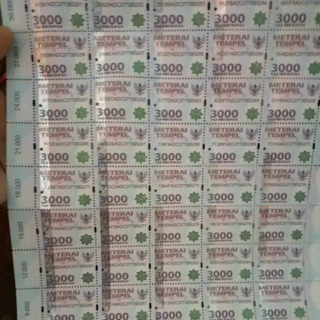 Artikel ini telah tayang di Kompascom dengan judul "Masa Transisi, Materai Rp 3000 dan Rp 6000 Masih Berlaku Hingga Akhir 21" s Meterai Rp Diedarkan Pekan Depan. Direktur Peraturan Perpajakan I Direktorat Jenderal Pajak Kemenkeu Arif Yanuar menambahkan, masyarakat masih bisa menggunakan materai Rp 3000 dan Rp 6000 Hal ini bisa dilakukan untuk setahun ke depan selama masa transisi "Dengan cara memateraikan dalam dokumen minimal nominal Rp 9000. JAKARTA, KOMPAScom Pemerintah mulai memberlakukan tarif bea meterai tunggal atau materai Rp per 1 Januari 21Sementara meterai Rp 3000 dan meterai Rp 6000 tetap berlaku dalam masa transisi Hal tersebut sesuai dengan ketentuan di dalam UU Nomor 10 Tahun tentang Bea MeteraiDalam regulasi teranyar tersebut, kedua meterai lama hanya bisa digunakan sampai 31 Desember 21.