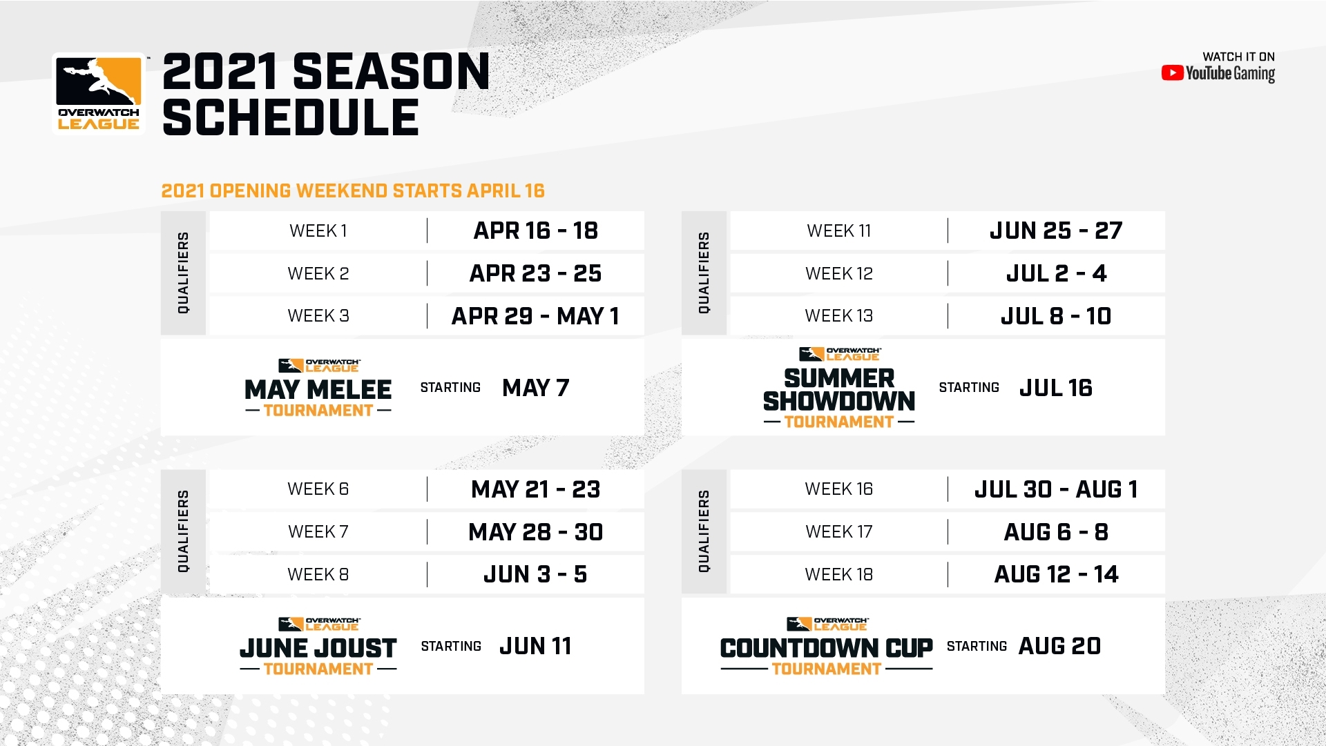 TAMPA, FL \\ The Tampa Tarpons have announced their schedule for the 21 Southeast League season (formally Florida State League) The season will consist of 1 games, including 60 home games. Match Week 11 Friday, 5 March 21 Matchweek 11 Adelaide United v Newcastle Jets Coopers Stadium Kickoff 635 pm Gates open at 530pm ALeague /21 Season ?. By Robert Hanes January 25, 21 2 The offseason for the Overwatch League is essentially over in terms of building teams with only some smaller moves to be made With the seasonending in October though, it feels like this offseason has dragged on quite a bit Many may be wondering when what has ultimately been a very long offseason will be coming to an end?.