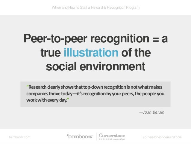 This toolkit provides an overview of employee recognition programs offered by employers, including the types of programs commonly offered, the rationale for adopting such programs and HR's role in. PeertoPeer program best practices How do you start implementing peertopeer recognition in your organization?. Peer to peer recognition can be expressed in a variety of signs a “thank you” email, an encouraging note left on a keyboard, kudos sprinkled through the internal social activity feed, or a round of applause given during a project meeting These examples constitute simple, yet authentic and motivating forms of recognition.