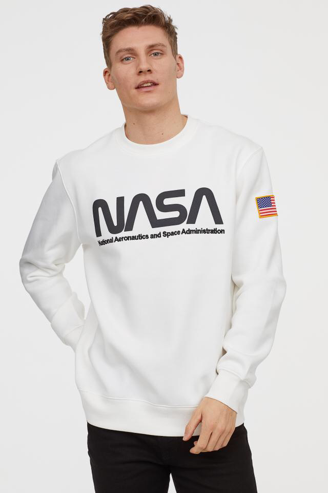 Sweater H M Crewneck Printed Sweatshirt White Nasa Original H M Putih L Lazada Indonesia