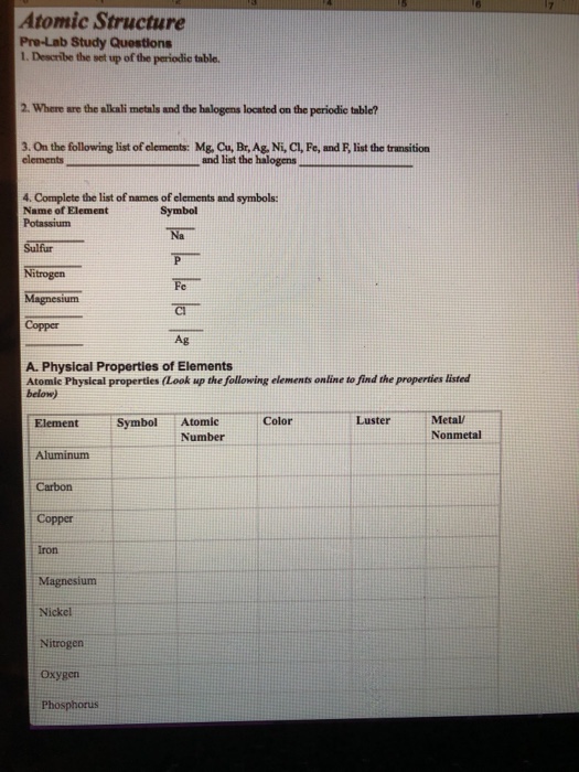 Solved Atomic Structure Pre Lab Study Questlons 1 Descri Chegg Com