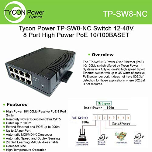 8 Port Unmanaged 10 100 Passive Poe L2 Network Switch 12 58vdc Wire Term In Poe Volt Out Volt In Poe Pinout 4 5v 7 8v 7x Passive Poe 1x Uplink Port Max 2a Port Incl