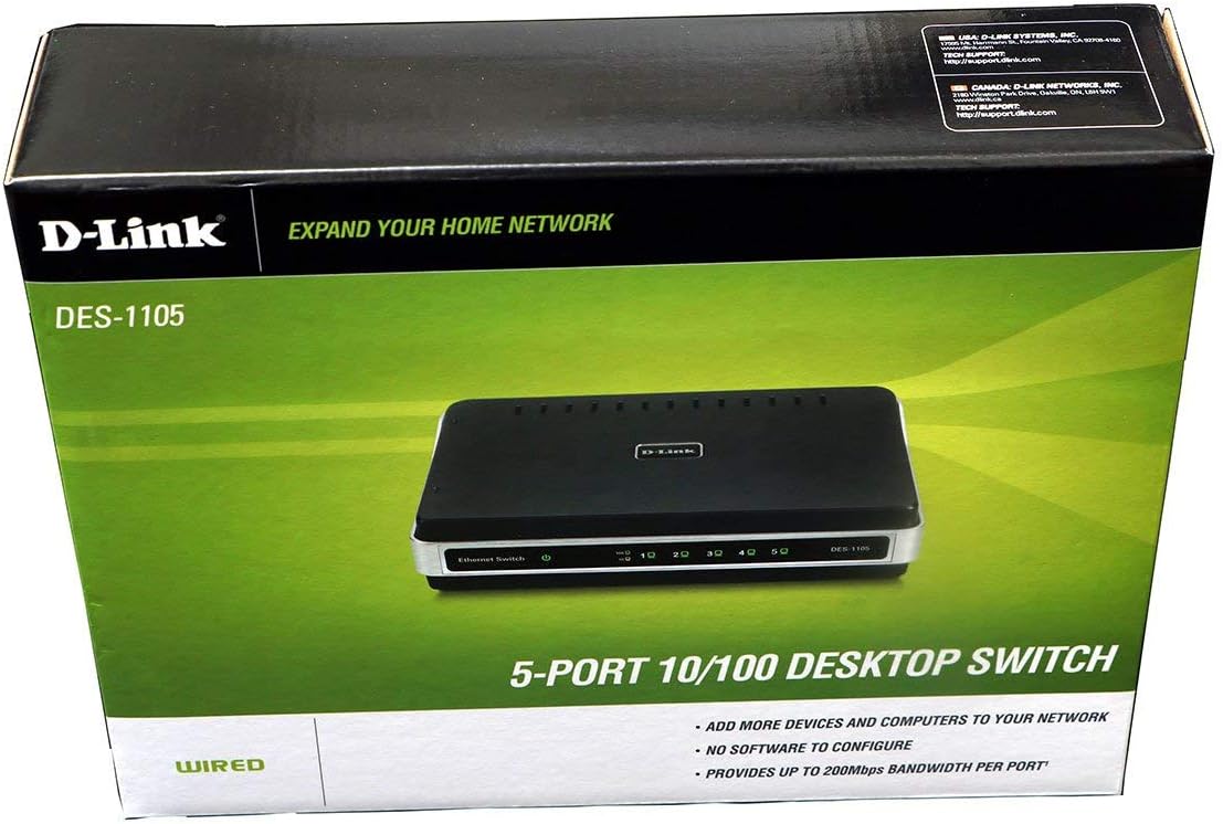 Amazon Com D Link Des 1105 5 Port 10 100 Desktop Switch With Software And Ac Adapter Computers Accessories