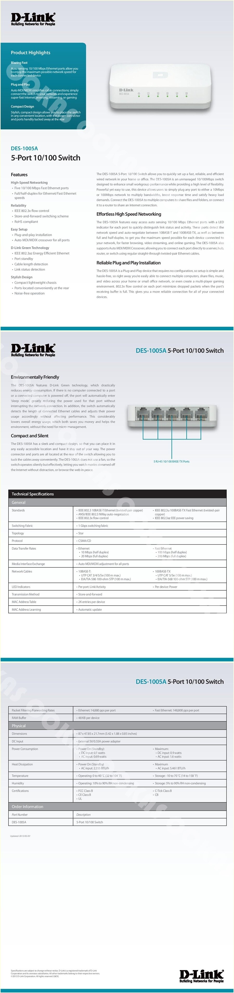 Ftp Ftp Dlinkla Com Pub Des 1005a Des 1005a E1 Datasheet 01 Hq Pdf