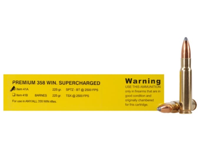 SuperX PowerPoint's unique exposed soft nose jacketed bullet design delivers maximum energy on target Strategicallyplaced notches around the jacket mouth improve upset and ensure uniform expansion for massive energy release. The358 Winchester is a35 caliber rifle cartridge based on a necked up308 Winchester created by Winchester in 1955 The cartridge is also known in Europe as the 91x51mm. Barnes TSX out penetrates typical 250gr premium partition358 bullets, but gives higher velocities, lower recoil and flatter trajectories of a 225gr bullet If you desire the flexibility of taking very large and dangerous NA big game at raking angles or at straight away shots, this TSX load delivers.