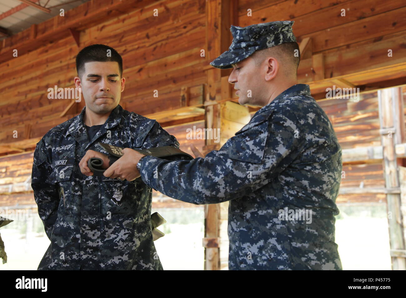 U S Navy Hospital Corpsman Hm 3rd Class Hector Guerra Demonstrates Proper Use Of A Splint By