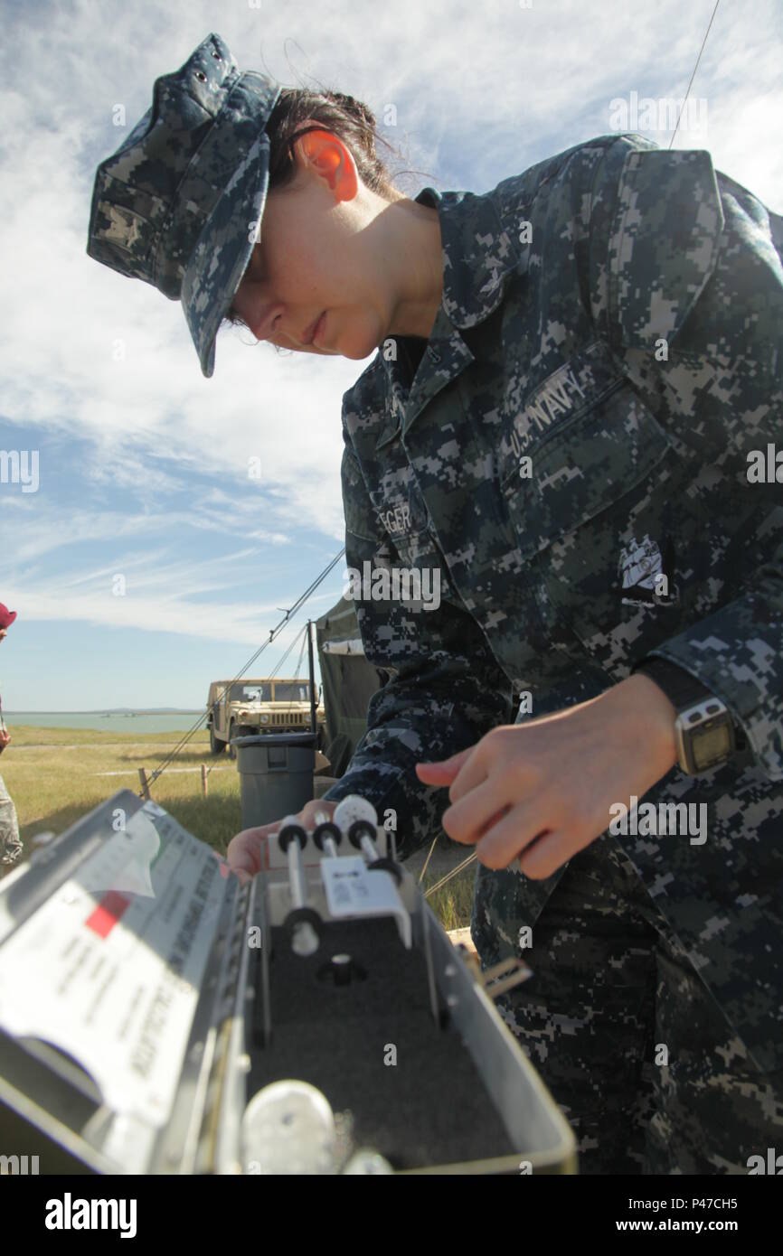 U S Navy Hospital Corpsmen Hm 3rd Class Stacy Traeger A Member Of Expeditionary Medical Facility Dallas Uses A Wet Bulb To Check The Heat Category On Forward Operating Base Orman As Part