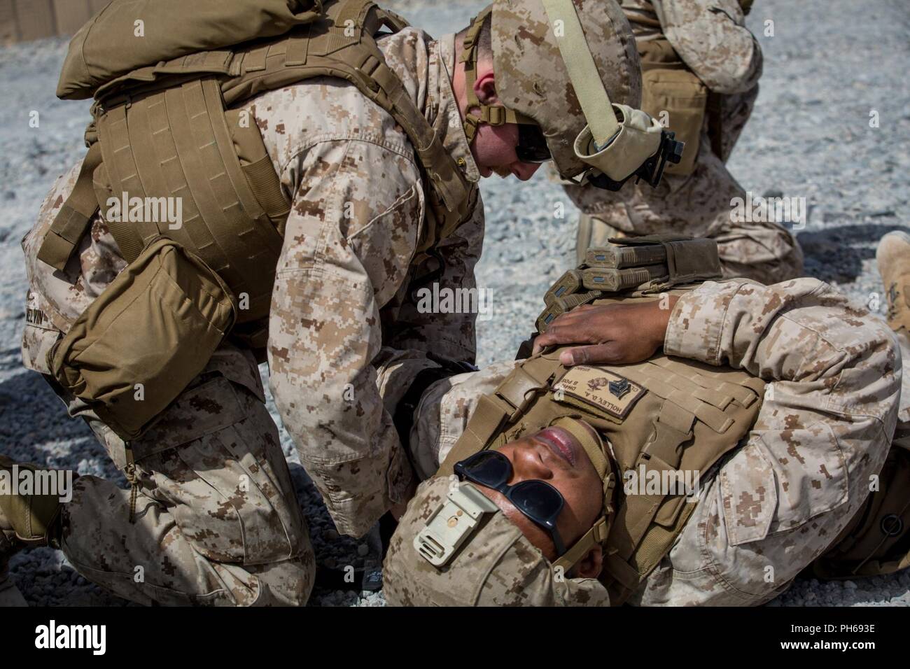 Undisclosed Location Middle East U S Navy Hm Kristopher Melvin Left A Corpsman With Combat Logistics Detachment 37 Cld 37 Attached To Special Purpose Marine Air Ground Task Force Crisis Response Central Command Applies A
