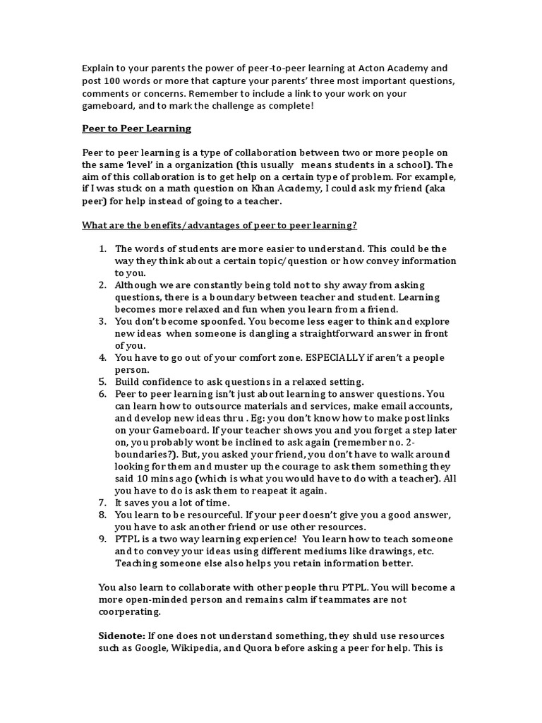 Peer To Other Peer Learning Peer To Peer Learning