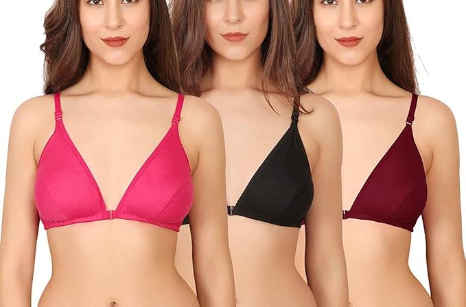 Zunahme Front Open Double Fabric Cotton Non Padded Bra For Women S And Girls Combo Pack Of 3 Latest Explore