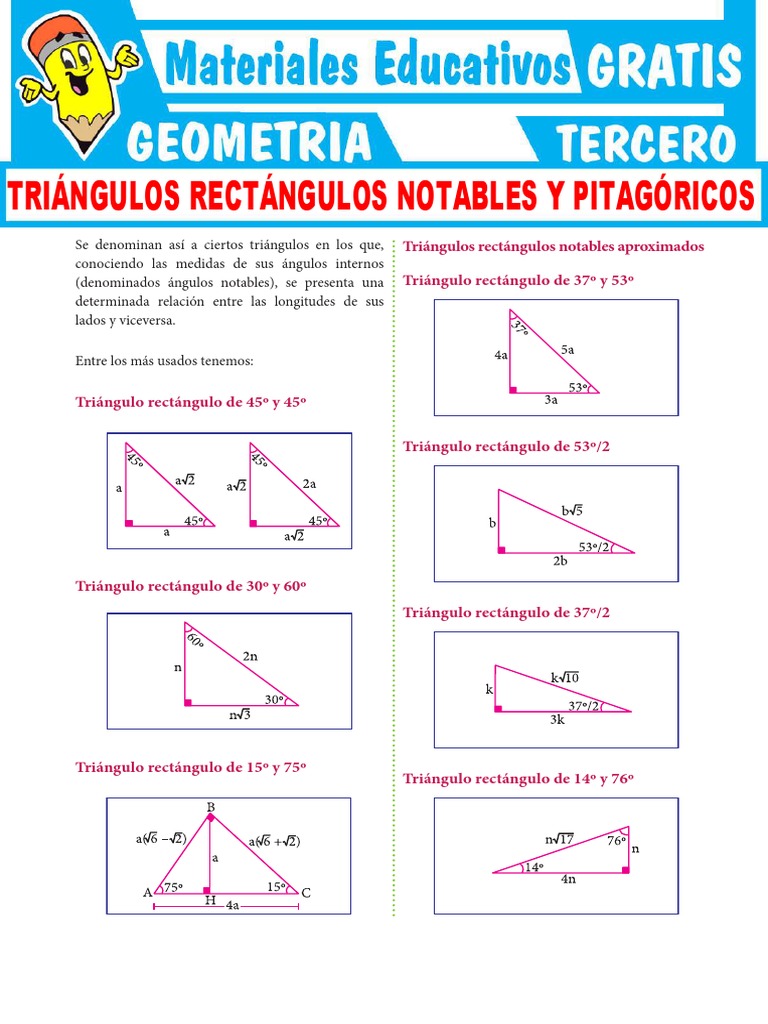 Triangulos Rectangulos Notables Y Pitagoricos Para Tercer Grado