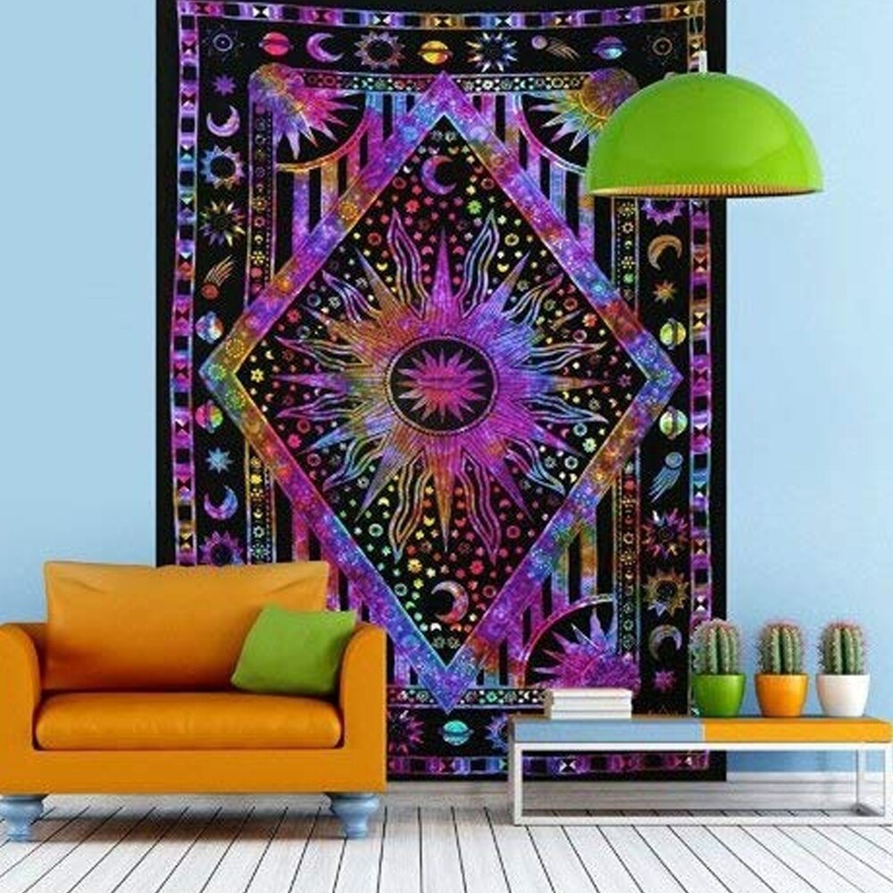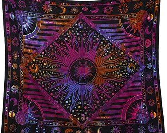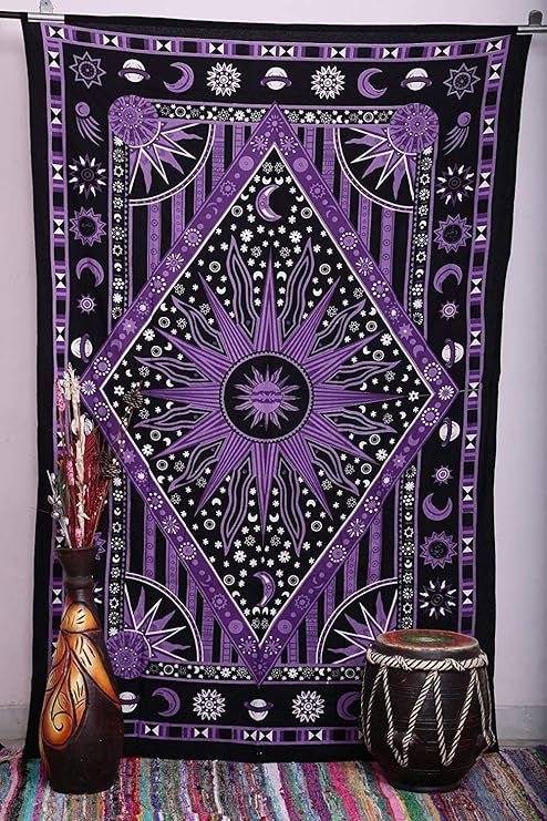 Purple And Black 54 X 60 Inches Indian Craft Castle Icc Purple Burning Sun Tie Dye Tapestry Celestial Sun Moon Planet Bohemian Wall Hanging Boho Hippie Hippy Tapestry Beach Coverlet Curtain Tapestries