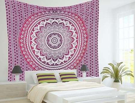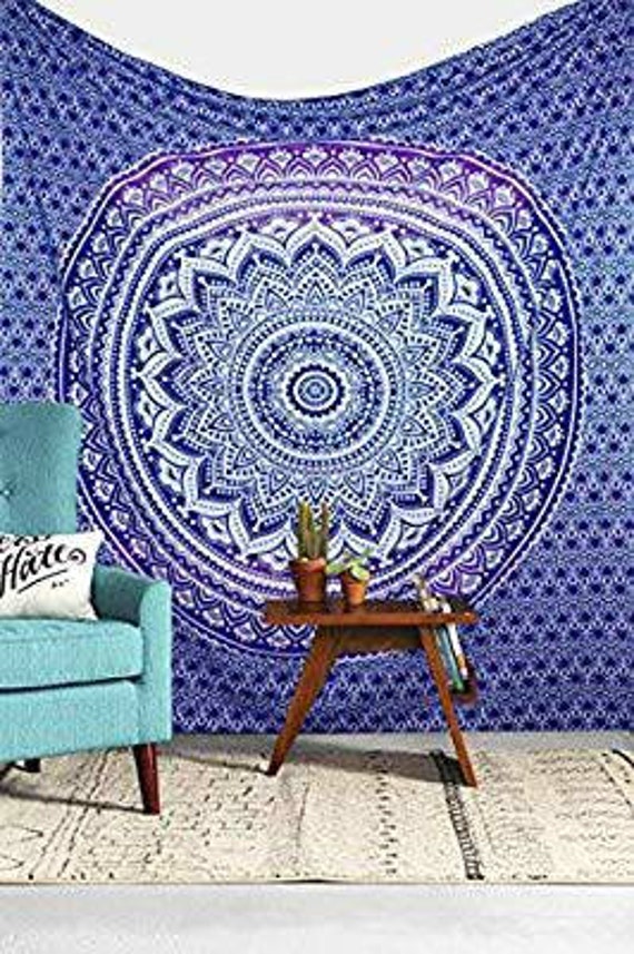 MADE IN INDIA Ombre tapestry is made of lightweight 100% Cotton Fabric, made & printed in India Size 54x60 inches A wonderful example of Indian craftsmanship. Home decor, wall hanging, bedspread, wall decor, wall art, bed cover, room divider, curtain, table cloth, college dorm, picnic blanket, Beach throw 0r for gifts It is printed on one side, using a heat dye sublimation technique with longlasting effects Please either. Overall Product Weight 4lb Make gorgeous home accents in the bedroom, den, living room or enclosed back patio.