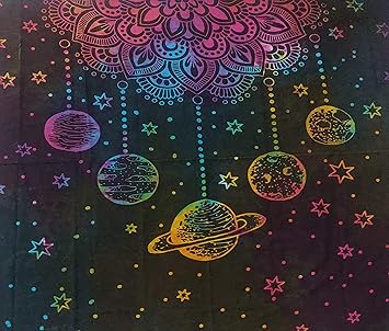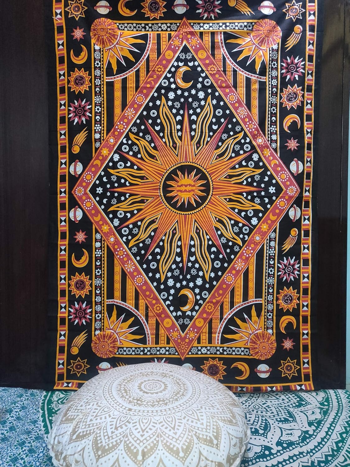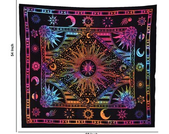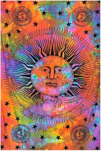 Anjaniya International Anjaniya Burning Sun Tie Dye Tapestry Celestial Sun Moon Star Planet Bohemian Medium Tapestry Tarot Card Wall Hanging Boho Tap