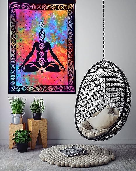 Anjaniya Seven Chakra Yoga Meditation Studio Room Decorations Tie Dye Hippie Psychedelic Medium Tapestry 7 Chakras Tapestries Meditating