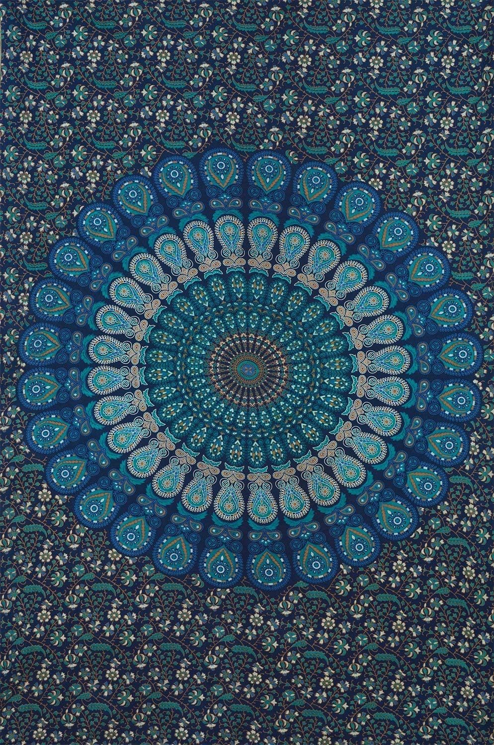 Indian Hippie Bohemian Psychedelic Peacock Mandala Tapestry Blue Green Medium Size 54x60 Inch Wall Tapestries द व र क ल ए ट प स ट र ह ग ग स ट प स ट र व ल ह ग ग ट प स ट र क