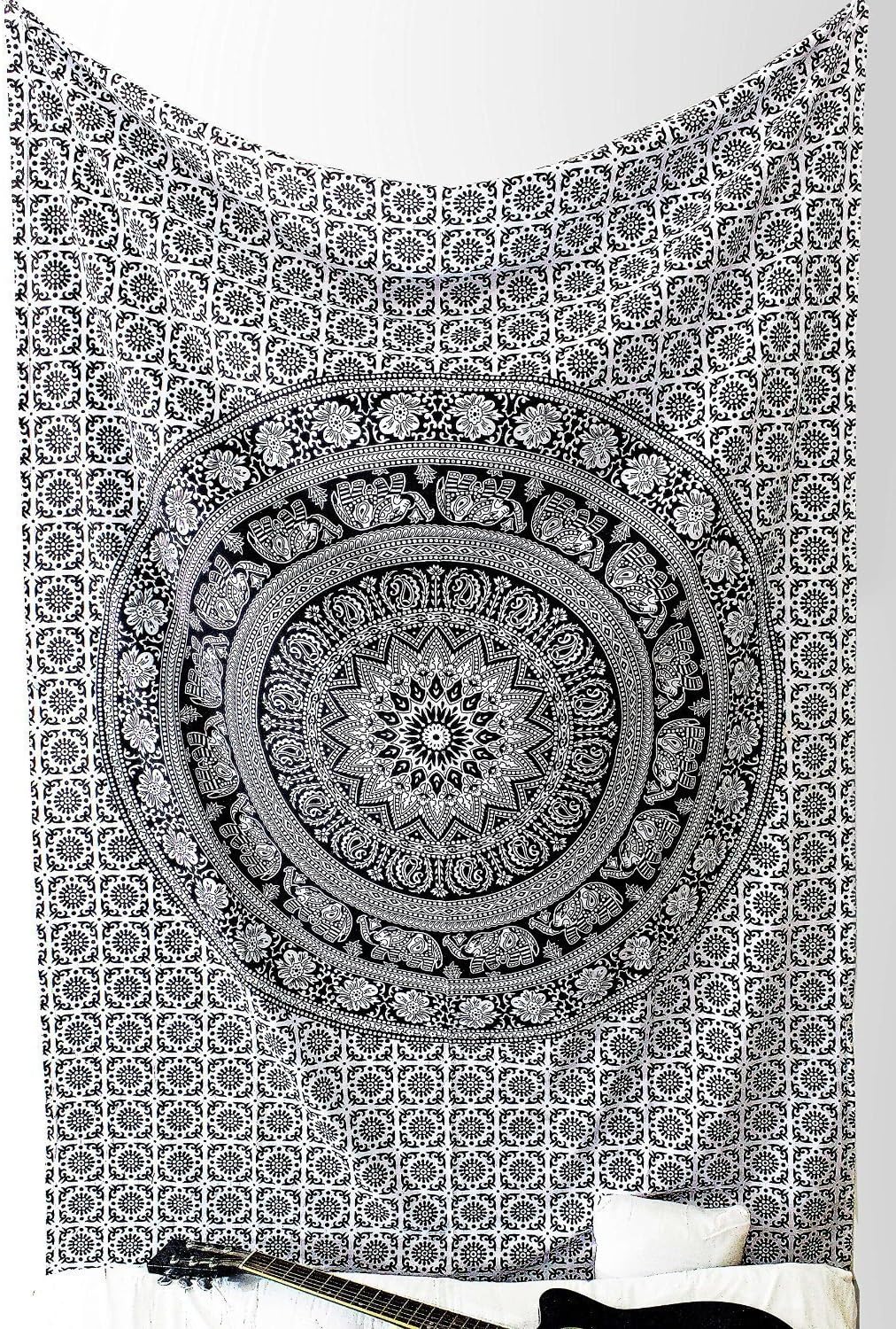 Home Kitchen Black White 54x60 Inches Tapestries Anjaniya Indian Hippie Bohemian Psychedelic Elephant Mandala Wall Hanging Tapestry Home Kitchen Home Decor