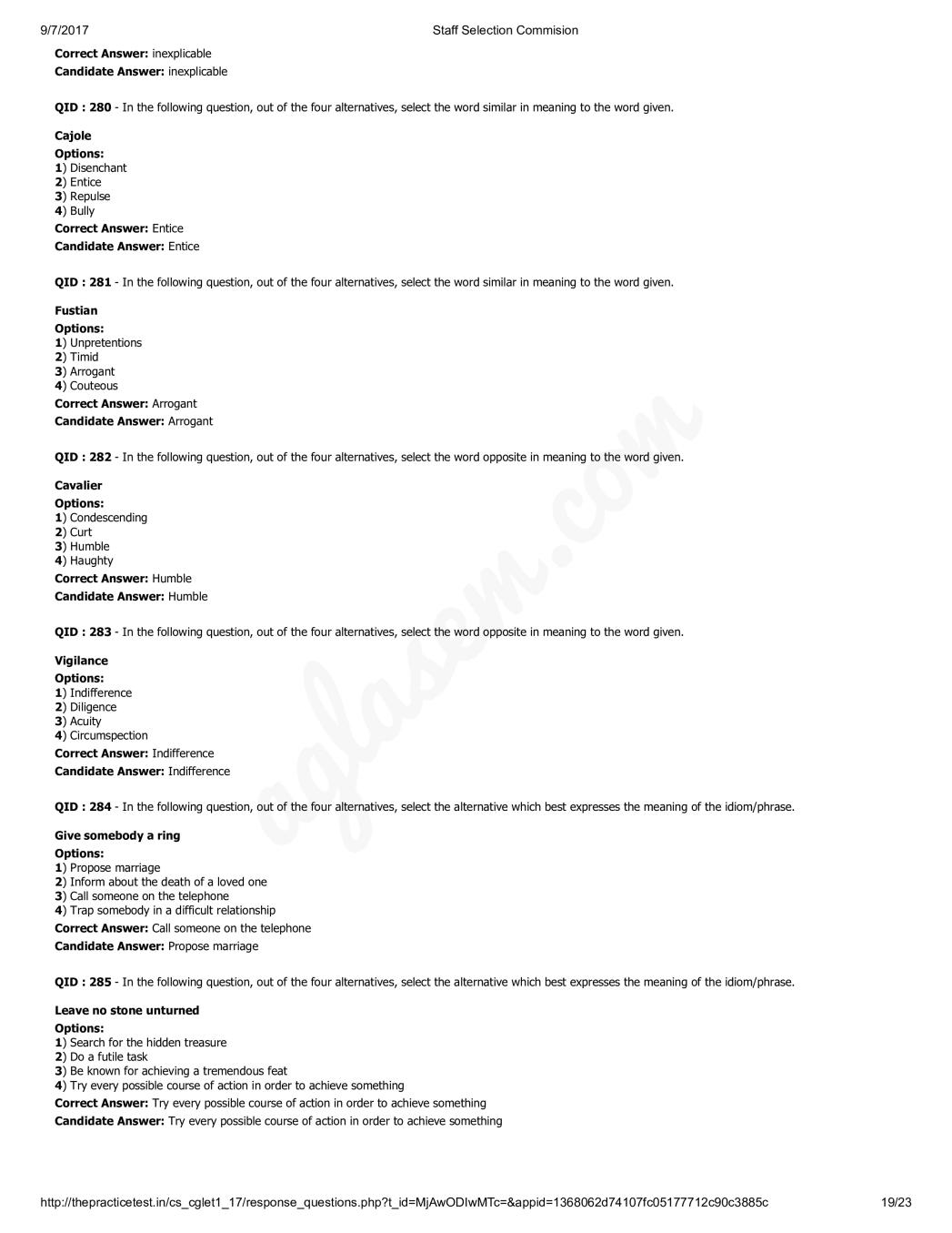 Ssc Cgl Question Paper Tier 1 17 Exam 19 Aug 17 Third Shift