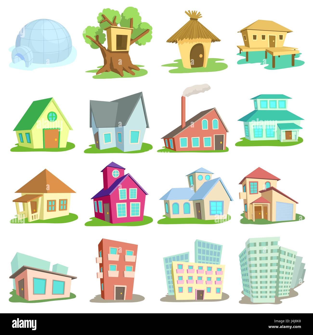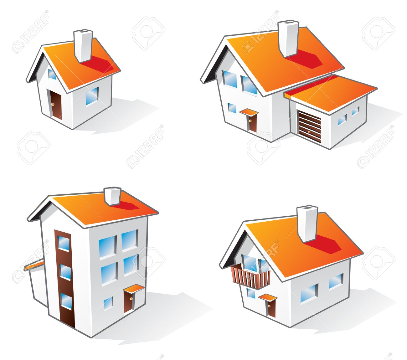 Four Different Houses Icons In Cartoon Style Royalty Free Cliparts Vectors And Stock Illustration Image